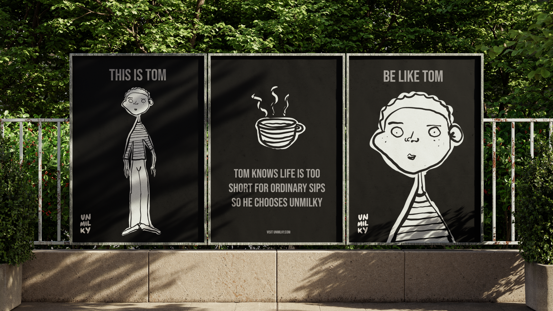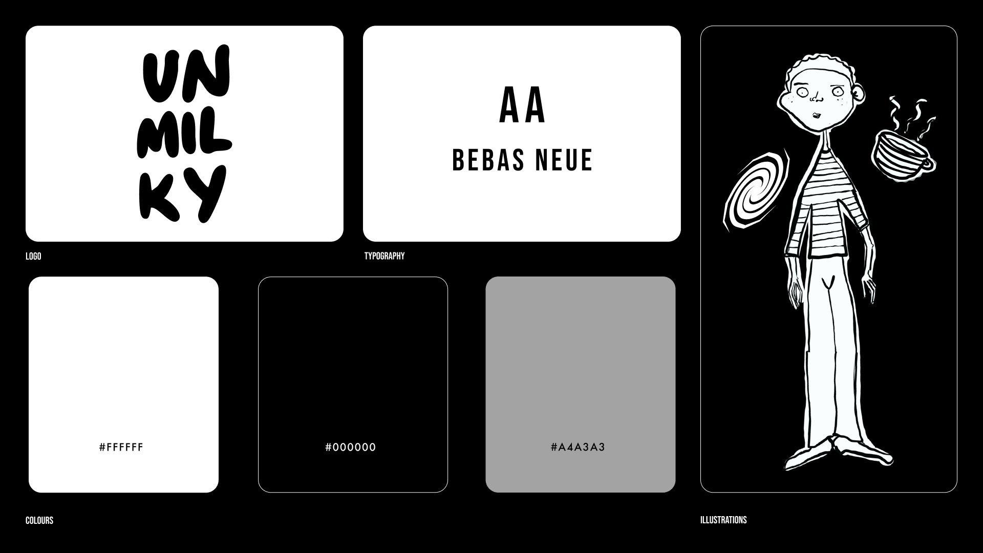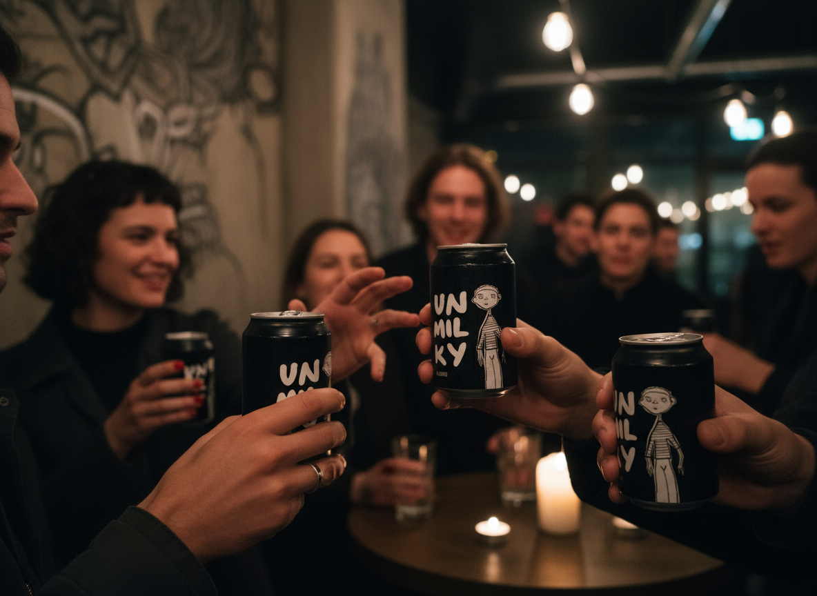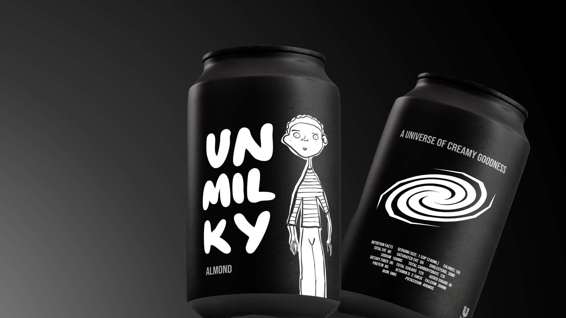 Unmilky is a branding and packaging project for an alternative milk startup, founded by Tom, who sought to revolutionize the coffee experience with dairy-free options. The brand embraces the 'unmilky way,' exploring a universe of alternative tastes that declare dairy is overrated. My main goal was to create standout packaging and identity that enhances product visibility in a competitive market.